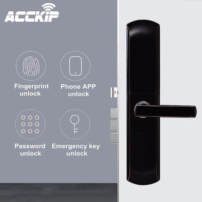 Hot Product ACCKIP Fingerprint Password Door Lock Keyless Smart Door Lock Fingerprint Password Card Key Unlocki